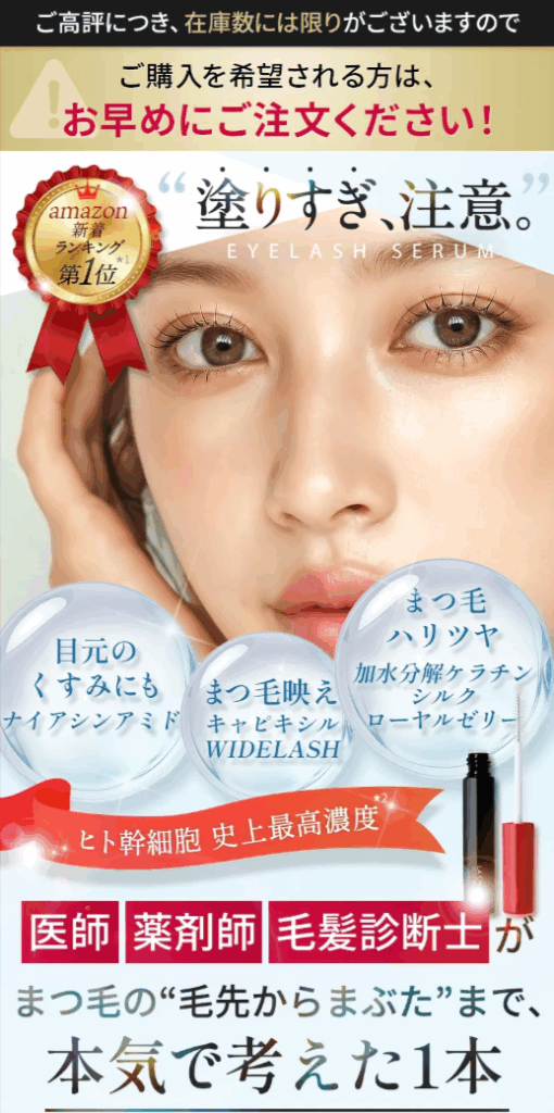このエイジングケア成分配合まつ毛美容液は、今、多くの大人の女性から支持を集めています。