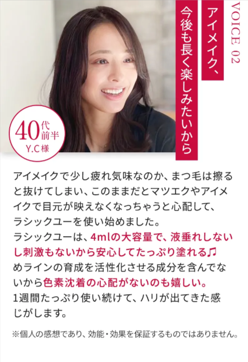 。大人の女性の皆さまには、ラシックユー アイラッシュセラム プラス公式サイトから、