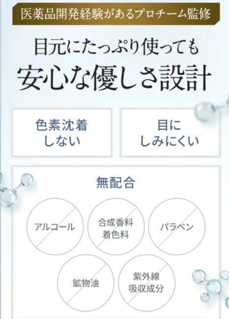 デリケートな目元に負担をかけにくい設計です。色素沈着しない、目にしみにくいという優しさ設計です。